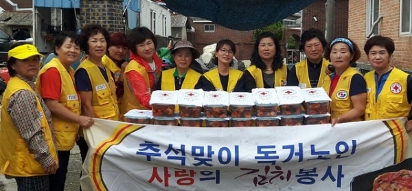 또한, 계화면적십자봉사회(회장 최민자)에서는 회원 30여명이 추석 김치 담그기 행사를 추진하여 독거노인 50세대에 김치를 전달했다.