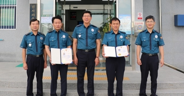 부안경찰서 임성재 서장이 추석 연휴 귀촌한 지역주민의 장례를 도운 진서파출소 경찰관을 격려했다.