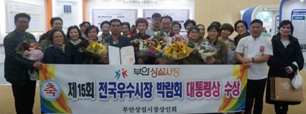 부안상설시장이 지난 12일부터 군산시 새만금컨벤센센터에서 열린 ‘2018 전국 우수시장 박람회’에서 전국 1500여개 전통시장 중 최우수시장으로 선정 대통령상 기관표창을 수상했다.