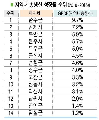 완주군 연평균 9.7% 성장, 김제시 7.2%로 2위