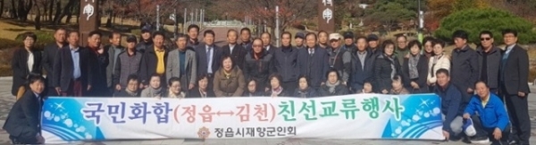 정읍시재향군인회(회장 윤재동)는 경북 김천시재향군인회(회장 이정화)와 지난 1일 김천시 직지사 청산고을에서 제21차 국민화합(영·호남) 친선교류 행사를 가졌다고 밝혔다.