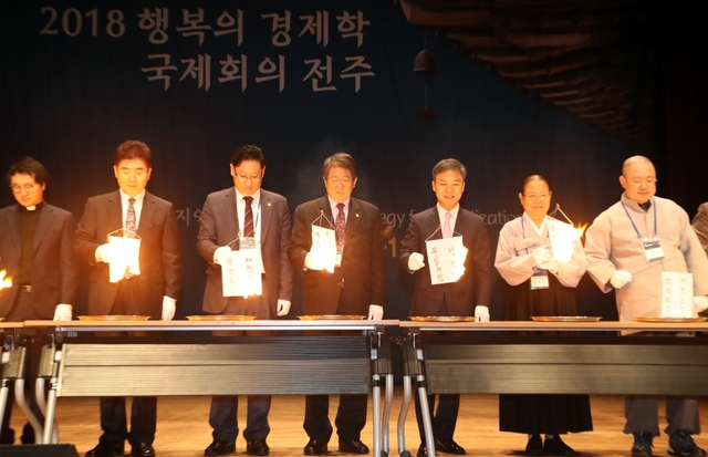 전주시는 8일 한국전통문화전당 공연장에서 김승수 전주시장과 박병술 전주시의회 의장, 제이 톰트 영국 플리머스대 교수 등이 참석한 가운데 진행된 ‘2018 행복의 경제학 국제회의 전주’개막식에서 부실채권을 소각했다.