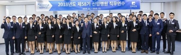 JB금융그룹 전북은행(은행장 임용택)은 지난 12일 전북은행 본점 연수원에서 2018년 신입행원 연수 입교식을 갖고 인재육성을 위한 직무연수에 들어갔다.