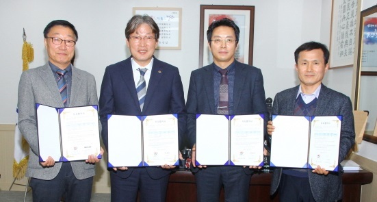 유진섭 정읍시장과 배명수 대표, 남궁수중 대표는 지난 13일 정읍시청에서 첨단과학산업단지 투자협약(MOU)을 체결했다.