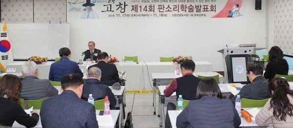 고창 판소리문화 발전 방안 연구를 주제로 ‘제14회 고창 판소리 학술발표회’가 지난 17일과 18일 고창군립도서관 문화강좌실에서 열렸다. 이번 판소리 학술발표회는 고창군이 주최하고 판소리학회가 주관하여 7개의 연구 발표가 이뤄졌다.