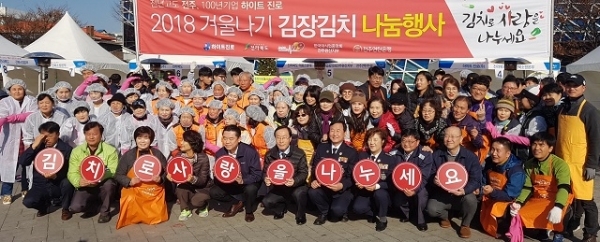 하이트진로(대표이사 사장 김인규)는 20일 전북소방본부(본부장 마재윤)와 함께 ‘2018겨울나기 김장김치 나눔 행사’를 개최했다.