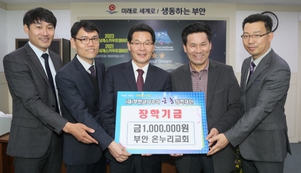 부안 온누리교회(목사 오민열)는 지역인재 육성을 위해 21일 나누미근농장학재단에 장학금 100만원을 기탁했다.