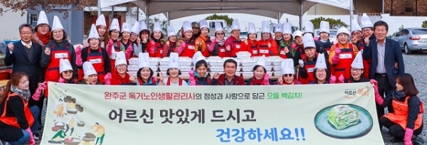 완주군 독거노인생활관리사 38명은 21일 매월 적립해 모은 500여만원의 기금으로 위장이 약한 어르신들을 위해 맵지 않은 백김치를 담가 전달했다.