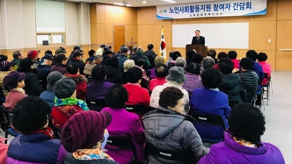 이날 간담회는 노인 사회활동 지원사업에 참여한 어르신들에게 건의 사항을 들으며 내년도 사업을 내실 있고 효율적으로 추진하기 위한 시간을 마련했다.