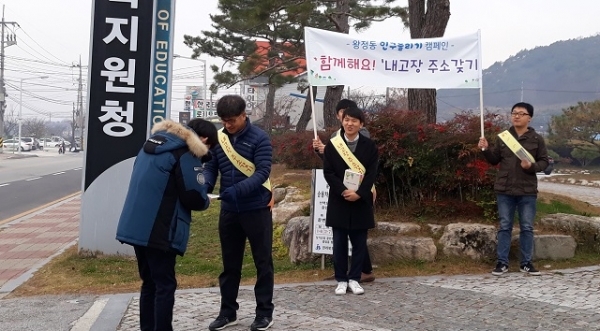 남원시 왕정동행정복지센터는 사회단체 회원들과 함께 지난 21일 인구 감소 위기극복을 위해 남원교육지원청 앞에서 ‘남원 주소 갖기 캠페인’을 펼쳤다.