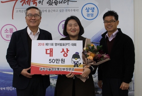 전북지방우정청(청장 김성칠)은 지난 23일 우정공무원교육원에서 개최한 제11회 영어발표대회에서 김제우체국 김소올 주무관이 대상을 수상했다고 26일 밝혔다.