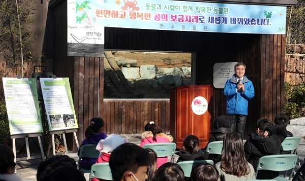 전주시는 26일 김승수 전주시장과 생태동물원 다울마당 위원, 전주동물원 생태해설사, 관람객 등 50여명이 참석한 가운데 곰사 신축 재개방 기념행사를 가졌다.
