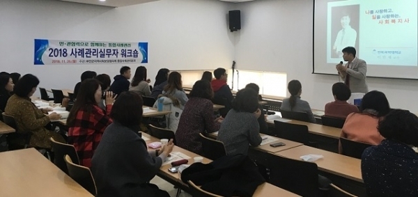 워크숍은 1부에서 ‘나를 사랑하고 일을 사랑하는 사회복지사’란 주제로 특강이 진행됐으며 2부에서는 내소사 템플스테이를 통해 단청 그리기, 다도 등 실무자의 지친 심신을 충전할 수 있는 힐링체험이 진행됐다.