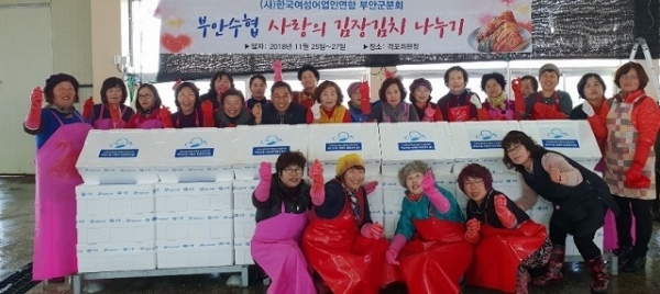한국 여성어업인연합회 부안군 분회(회장 김선자)는 지난 25~27일 3일간 격포 위판장에서 ‘사랑의 김장김치 나누기 행사’를 열었다.