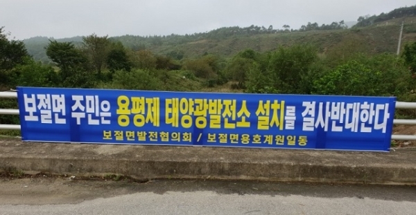 보절면 용평마을 김석규 이장은 “저수지를 뒤덮은 태양광 패널이 마을을 찾는 관광객들에게 혐오감을 줄 것 같다”면서 “보절면 발전협의회 차원에서 현수막도 걸며 반대 목소리를 냈다”고 말했다.