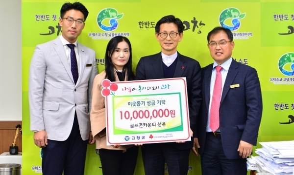 ㈜골프존카운티 선운(대표 서상현)이 ‘희망 2019 나눔 캠페인’에 동참하며 성금 1000만 원을 고창군에 기탁했다고 지난 달 30일 밝혔다.