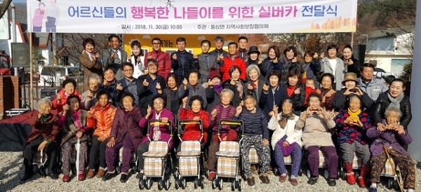 완주군 동상면 지역사회보장협의체가 지역 어르신들에게 실버카 18대를 전달하고, 사용방법과 주의사항을 설명하는 시간을 가졌다.