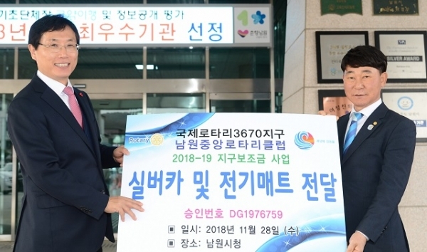 남원 중앙로타리클럽(회장 김왕희)은 지난 달 28일 지역 소외계층을 위해 써달라며 500만 원 상당의 실버카와 전기매트를 전달했다고 2일 밝혔다.