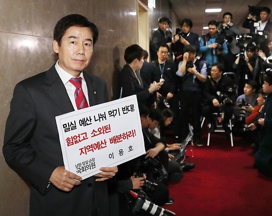 이 의원은 지난 2일부터 1인 시위에 돌입했다. 이어 3일에는 국회의장-원내대표 회동이 열리는 의장실 앞에서 피켓 시위를 하며 홍영표·김성태·김관영 여야3당 원내대표에게 소외된 지역 예산을 보장할 것과 증·감액 각 단계와 과정을 공개해야 한다고 주장했다.