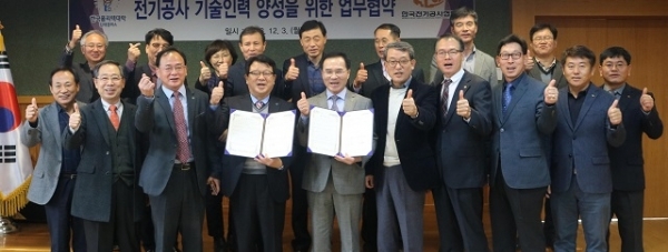 이날 대학에서는 김공묵 학장, 이상근 교학처장, 이두용 스마트전기과 학과장 등 10명과 협회는 김은식 회장, 양관식 부회장, 이화준 이사, 손영관 연구원 이사, 최병인 신성장위원, 이상건 운영위원 등 20여명이 참석했다.