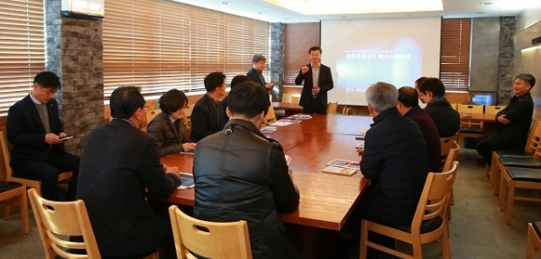 완주군은 벤치마킹을 위해 찾은 관계자들에게 지역 농산물 공급 확대로 농민들의 소득 보장, 지역 주도의 일자리 창출 등 선순환 체계를 설명하고 있다.