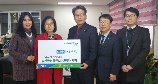 NH농협은행 임실군지부(지부장 이승계)는 연말연시를 맞아 5일 임실읍사무소를 방문해 200만 원어치의 사랑나눔 농산물상품권을 전달했다.