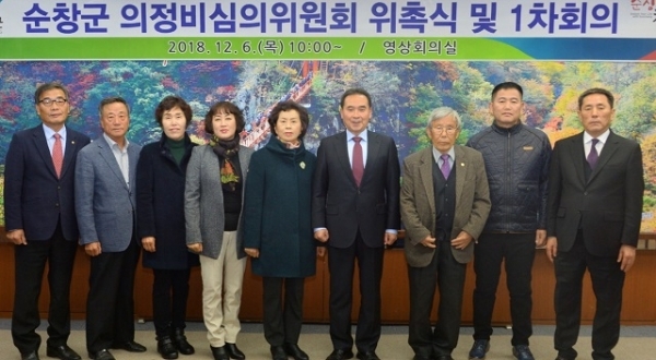 순창군이 지난 6일 군청 영상회의실에서 2019년도부터 2022년까지 순창군의회 의원에게 지급할 의정비 지급결정을 위해 심의위원에게 위촉장을 수여하고 1차 회의를 가졌다.