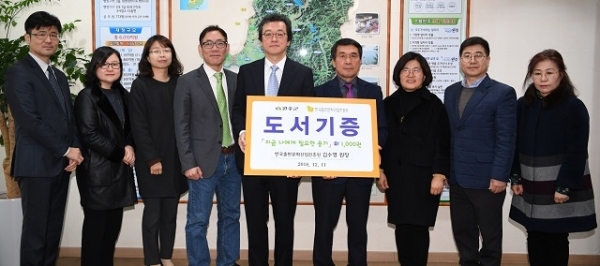 한국출판문화산업진흥원 김수영 원장이 11일 박성일 완주군수를 찾아 도서 1000여권을 기증했다.