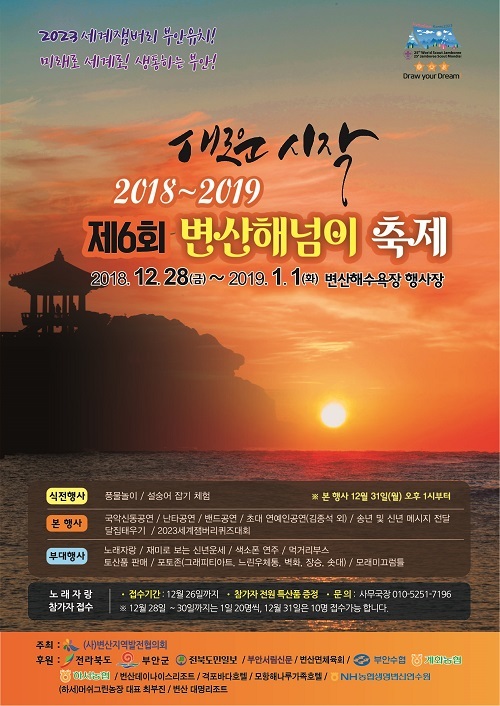 2018년 부안 변산 해넘이 축제가 오는 28일부터 내년 1월 1일까지 변산해수욕장에서 개최된다.