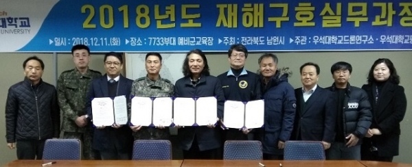 육군 제7733부대 3대대(대대장 조철훈)는 지난 11일 우석대학교 드론연구소(소장 김윤태)와 남원시자율방재단(단장 노시철), (사)한국드론산업협회전북지회, (사)한국항공소년단전북연맹(공동회장 최종인) 등과 함께 드론을 활용한 안보 및 재난구호 인력양성을 공동으로 시행하기 위한 협약식을 가졌다.