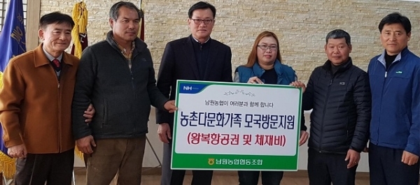 남원농협(조합장 박기열)은 13일 결혼이민여성 2명을 초청해 모국방문 왕복항공권과 체재비를 지원했다.