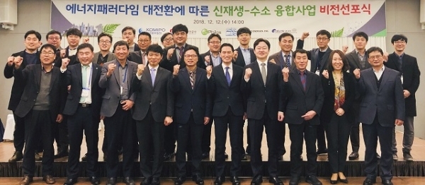 비전선포식에 참여한 기관들은 국책 연구개발과제인 ‘대형풍력 잉여전력 수소변환 시스템 기술개발’을 수행하고 있는 곳으로, 이 자리서 신재생-수소 융합 사업을 공동으로 추진하기로 협약도 체결했다.