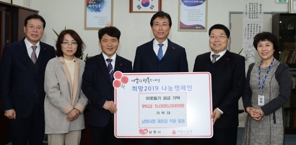 남원시 재정과 직원들도 지난 14일 2018 전라북도 지방 세정평가 우수 시·군에 선정돼 받은 시상금 500만 원을 따뜻한 정을 나누는 곳에 쓰기로 마음을 모아 전달했다.