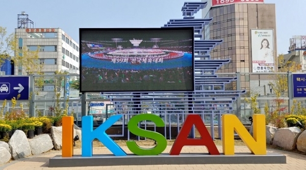 익산시가 호남의 관문인 익산역에 역사문화도시 익산을 상징하는 영상조형물 ‘라이브 고도 미디어 월’을 설치했다.
