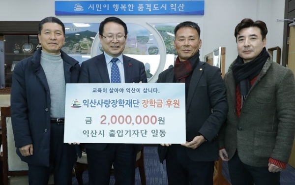 익산시청 출입기자단은 14일 지역인재육성을 위한 익산사랑장학재단 장학금으로 성금 200만원을 익산시에 기탁했다.