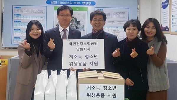 국민건강보험공단 남원지사(지사장 김희문) 사회봉사단은 지난 21일 남원시 왕정동에 거주하는 저소득층 여학생 8명에게 위생용품을 전달했다.