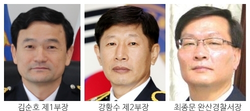 전라북도지방경찰청 제1부장에 김순호(55) 광주광산경찰서장, 전북경찰청 제2부장에 강황수(55) 경찰대학 학생지도부장, 전주완산경찰서장에 최종문(51) 서울경찰청 인사교육과장이 각각 내정됐다.