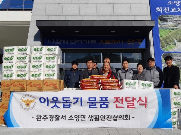 완주경찰서와 함께 소양면 안전을 위해 봉사해온 소양면생활안전협의회는 지난 2010년부터 해마다 어려운 이웃을 위해 물품을 기부하는 등 지역사회봉사활동을 꾸준히 실천하고 있다
