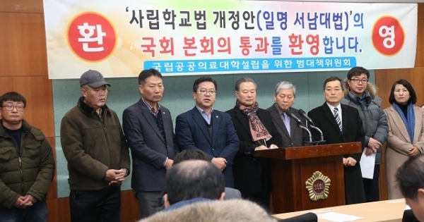 대책위는 “지난 27일 국회를 통과한 비리사학 재산환수를 골자로 한 사립학교법 개정을 환영한다”고 밝힌 뒤, “서남대 폐교에 따른 대안으로 추진되는 공공보건의료대학이 설립돼 의료사각지대가 해소될 수 있기를 바란다”고 밝혔다.