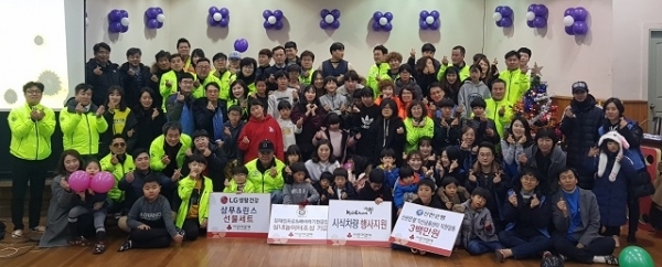 김 프로와 팬클럽 해바라기 회원 30여명은 지난 29일 아동복지시설 시온육아원을 방문해 실내놀이터를 조성하고, 대형냉난방기 및 생필품 등을 전달했다.