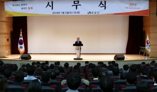 임실군은 새해 사자성어를‘가경취숙(駕輕就熟)’으로 정하고 2일 시무식을 통해 2019년의 성공적인 군정을 다짐했다.