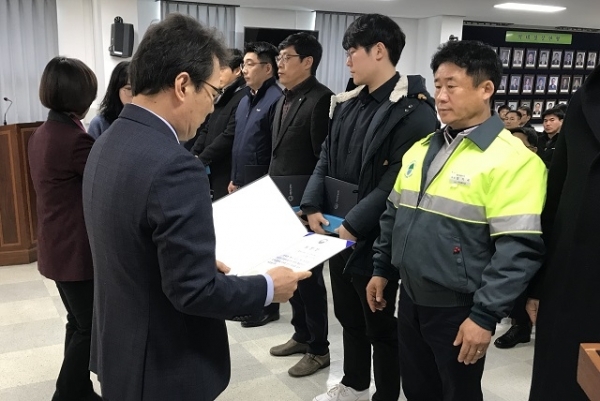 한라시멘트(주) 장항유통기지 전기서 씨(남·59)가 2일 열린 군산지방해양수산청 시무식에서 해양수산부장관 표창장을 받았다.