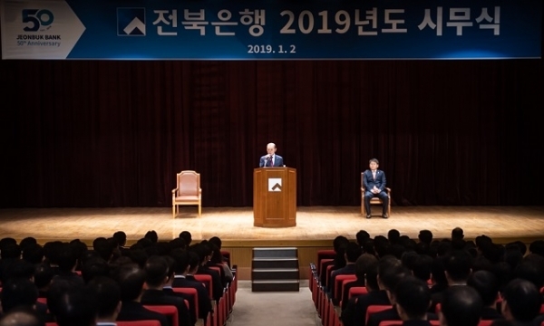 JB금융그룹 전북은행(은행장 임용택)은 2일 본점 3층 대강당에서 임직원 500여명이 참석한 가운데 2019년도 시무식을 실시했다.