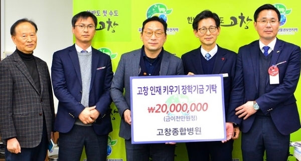 고창종합병원(이사장 조남열)은 2일 어려운 환경의 학생들을 위한 고창 인재키우기 장학금 2000만원을 고창군에 기탁했다