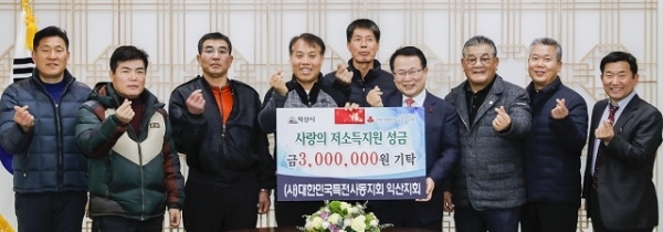 (사)대한민국특전사동지회 익산지회(회장 김귀봉)는 4일 정헌율 익산시장을 방문해 희귀난치성질환 지원 성금 300만원을 기탁했다.