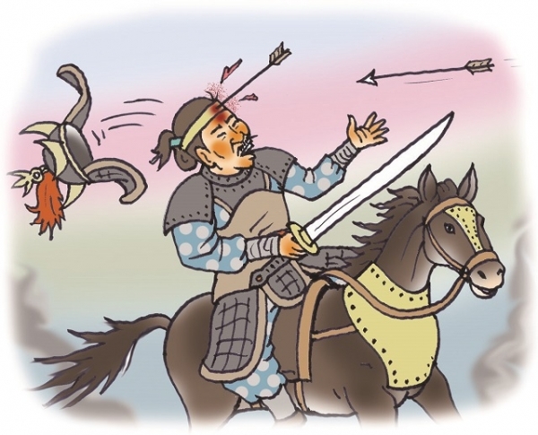 노무라가 소리친 다음 순간 화살이 날아와 왼쪽 눈에 박혔다. 안시성에서 계백은 당 고종 이치(李治)의 눈을 화살로 맞춰 애꾸로 만들었다. 그러나 이곳에서 노무라와의 거리는 70보, 화살이 왼쪽 눈을 뚫고 들어가 뒷머리를 깨고 밖으로 한 뼘쯤이나 나왔다. 뇌가 부서진 노무라는 말에서 떨어지기도 전에 저승으로 떠났다.