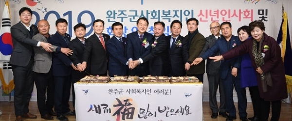 이날 행사에는 박성일 군수, 최등원 의장 및 완주군의원, 전북도의원, 군내 사회복지시설 기관장 및 사회복지 관계자 등 150여 명이 참석, 새해 완주군 복지 발전을 기원했다.