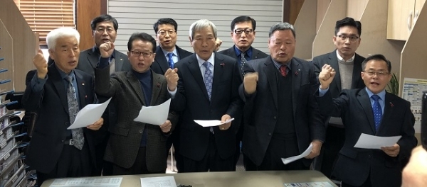 전북서남상공회의소(정읍·김제·고창·부안) 김적우 회장과 상공인들이 10일 정읍시청 브리핑실에서 기자회견을 갖고 ‘새만금 국제공항 예비타당성조사 면제 촉구 서남권 지역 상공인 성명서’를 발표했다.