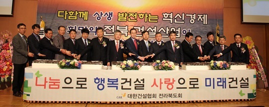 송하진 도지사는 “정성을 다할 때 비로소 결실을 거둘 수 있다는 절차탁마(切磋琢磨)의 자세로 건설업계에서도 지역 도민과의 소통과 협업·협력을 통해 새롭고 활기찬 전북 건설 산업을 이룩하자”고 당부했다.