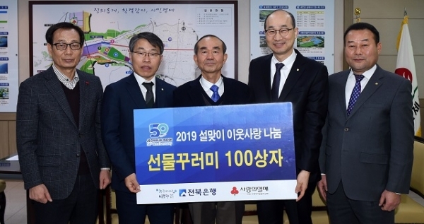 전북은행이 22일 김제 지역 내 어려운 이웃들에게 ‘이웃사랑 선물꾸러미’를 전달했다.